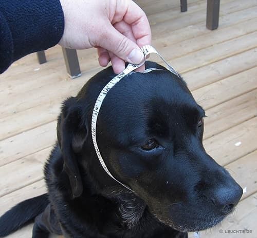 LEUCHTIE est tiré sur la tête du chien en tant qu'anneau fermé. Par conséquent, pour choisir la bonne taille, vous devez mesurer la circonférence de la tête du chien et non celle du cou (pour les exception, voir le point 3).